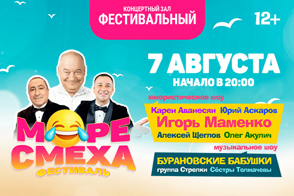 Фестиваль "Море смеха". Вечер юмора в Сочи, состоится в КЗ "Фестивальный" 7 августа 2023г. в 20.00 ч.